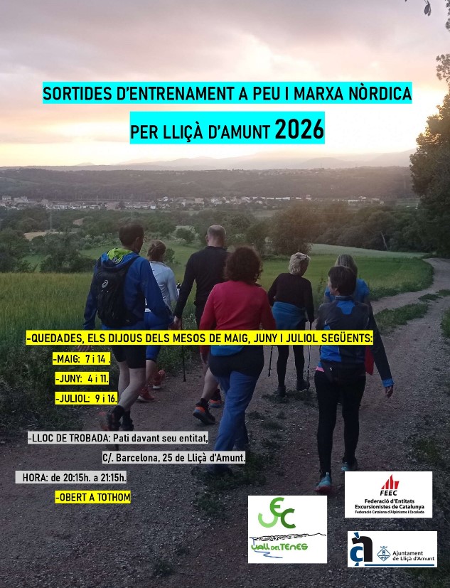 En motiu de les múltiples activitats del calendari 2026, vist de l’èxit de l’any passat, retornen a un seguit de sortides d’entrenament a peu i de Marxa Nòrdica, per l’entorn de Lliçà d’Amunt.